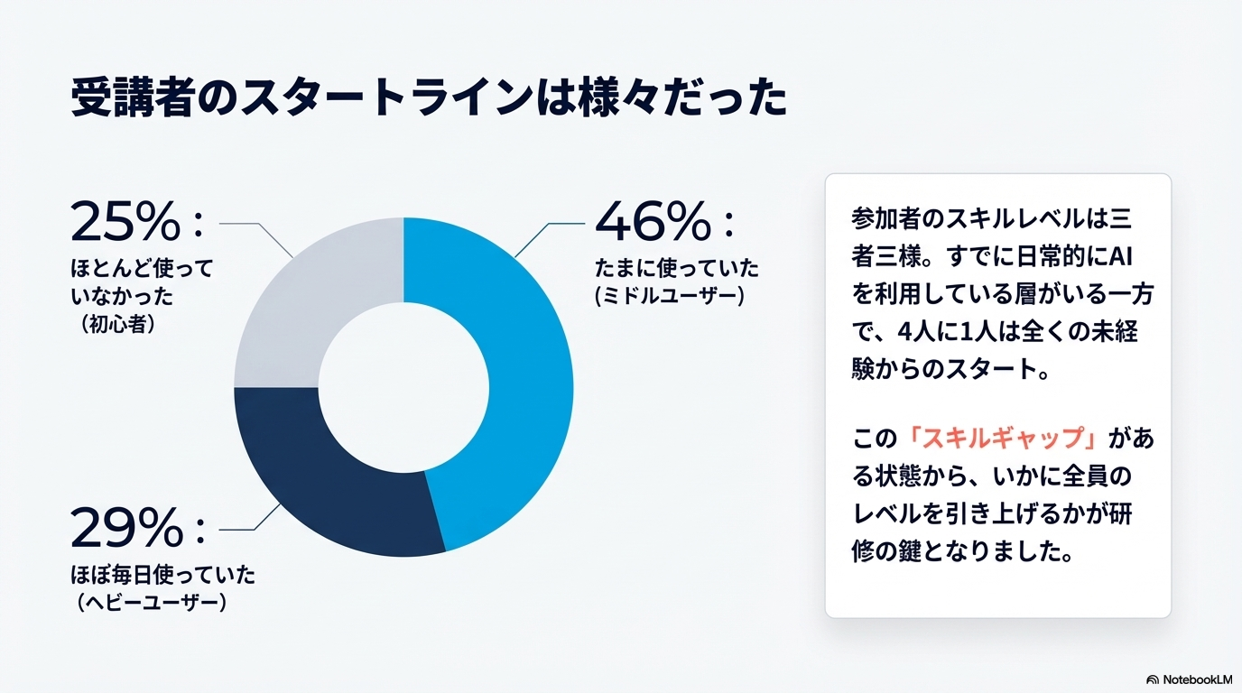 今回の研修では、AIをただの検索ツールとしてではなく、一緒に仕事の質を高めていく「思考のパートナー」として捉え直していただくことを目指しました。